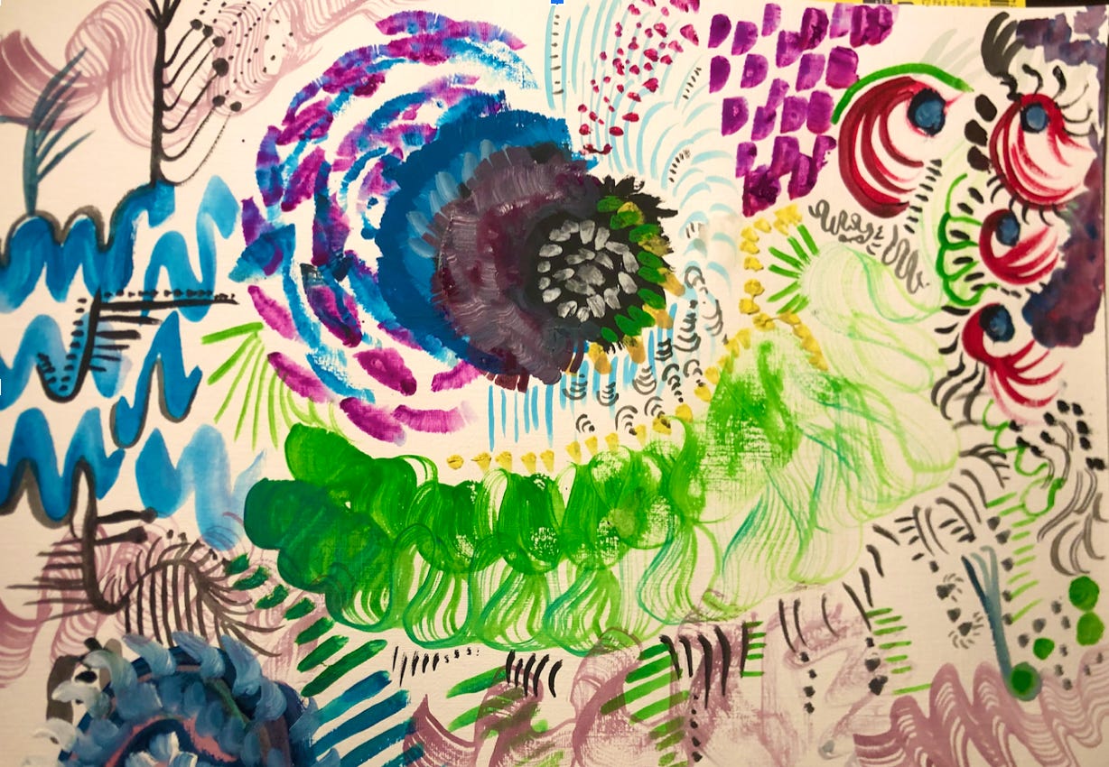 A technique I have used to inspire and envision my composition initially is the practice of visual scoring. Experimental music composers of the likes of Karlheinz have used this technique in the creation and performance of their music; working against the syntax of traditionally structured music notation, visual scoring allowed for the re-interpretation of a piece of music that was dependent on the performer (Fabrizi, 2015). Albeit, I have yet to use this technique with the intention of the composition re-interpretation but instead to use color, shape and form as a way of sketching out the feeling, textures and placement of the structure.